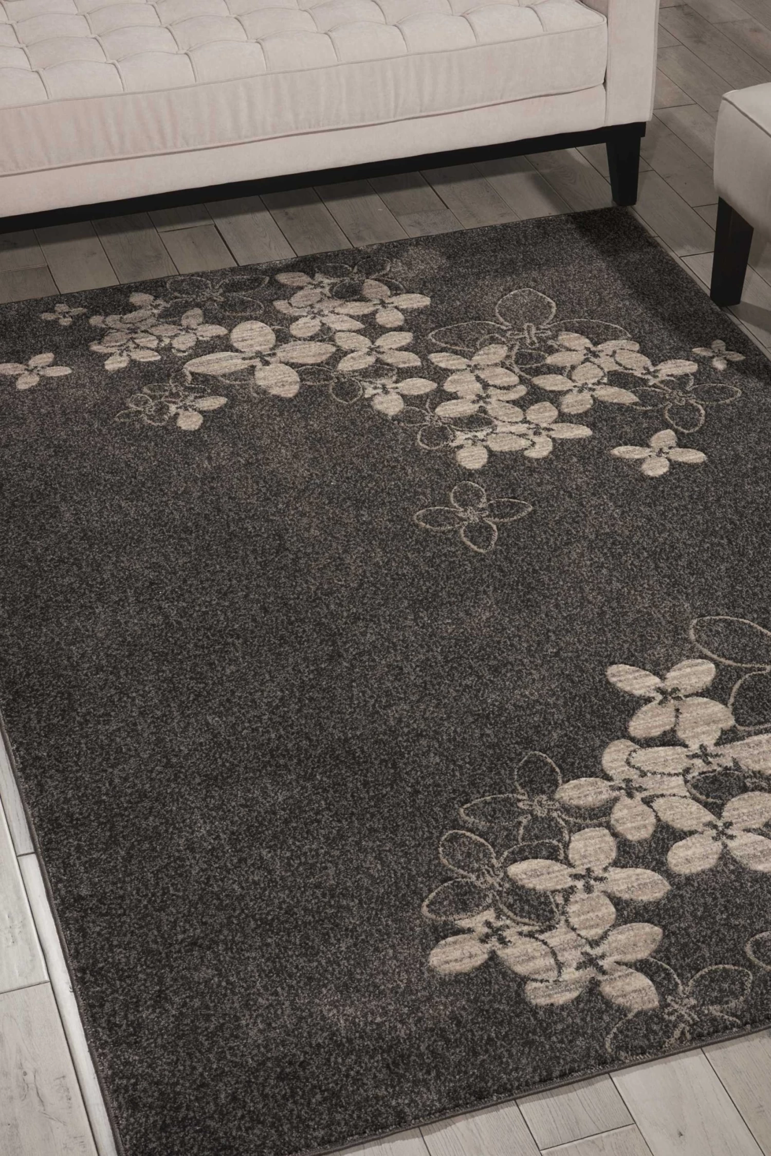 With simple yet graceful floral designs on a deep grey field, this Maxell area rug offers a sleek, contemporary spin on the classic beauty of floral rug design. The perfect balance between botanical beauty and modern chic.