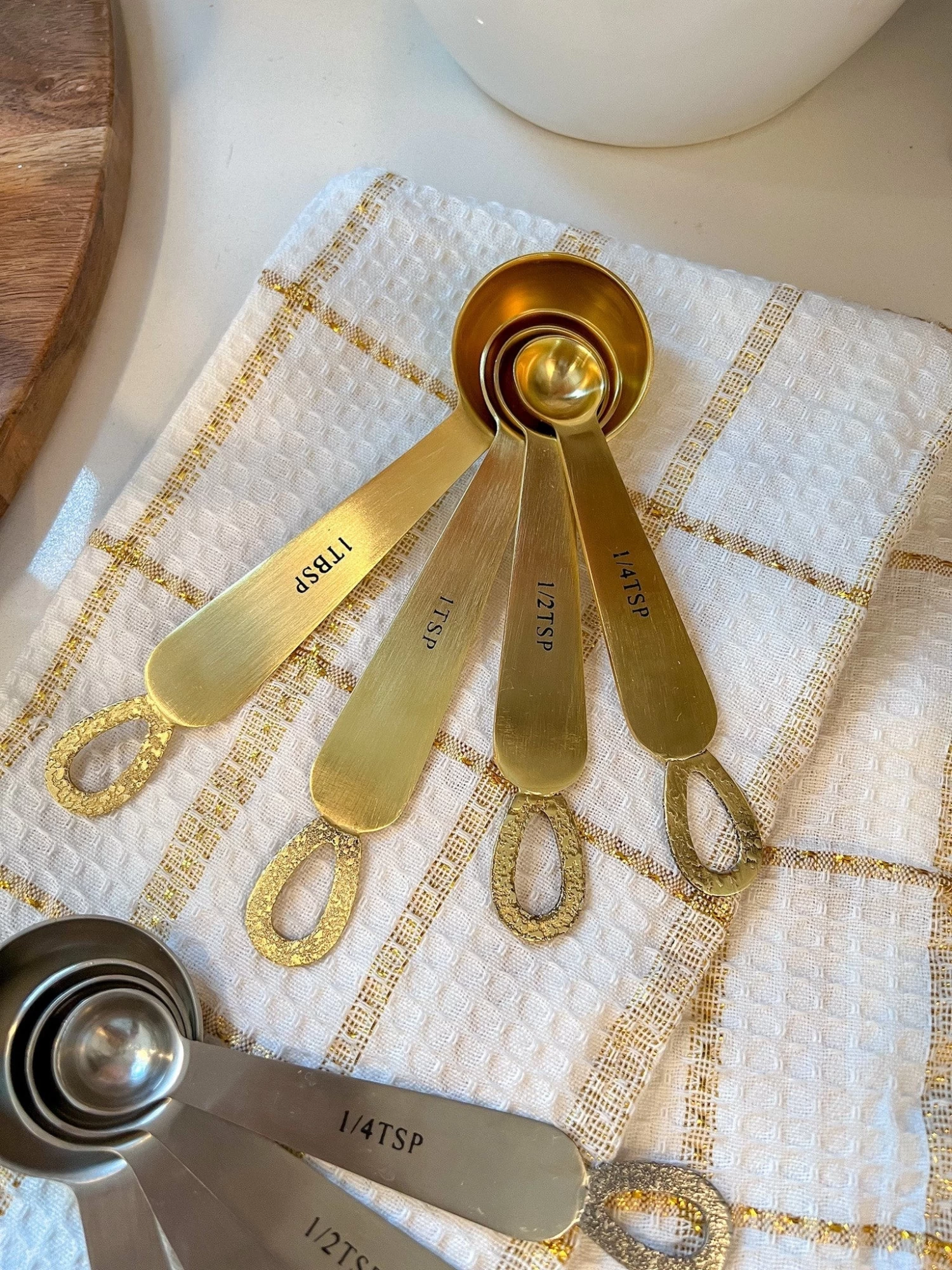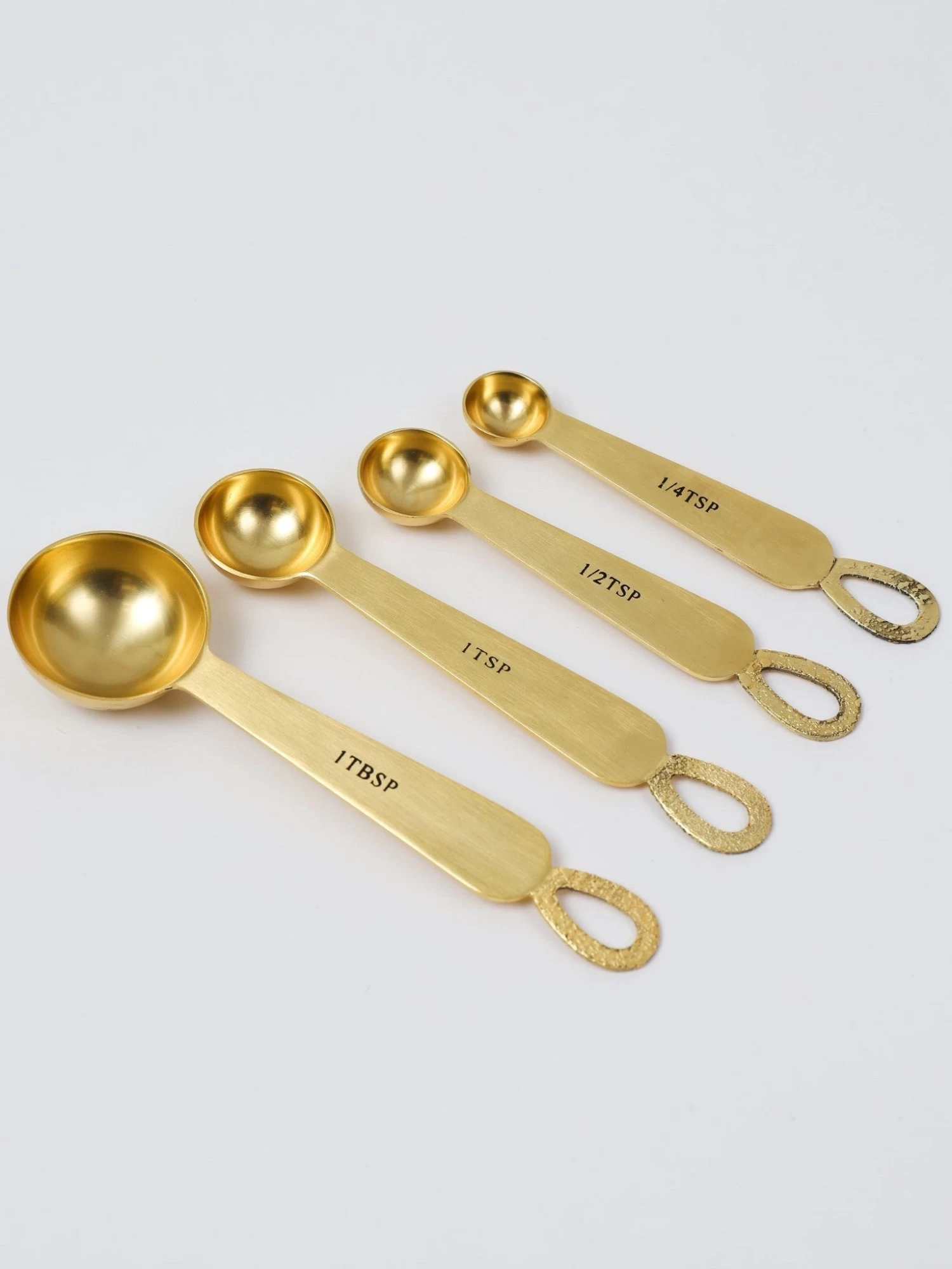 Description: This stunning set of 4 measuring spoons has a detailed loop handle.