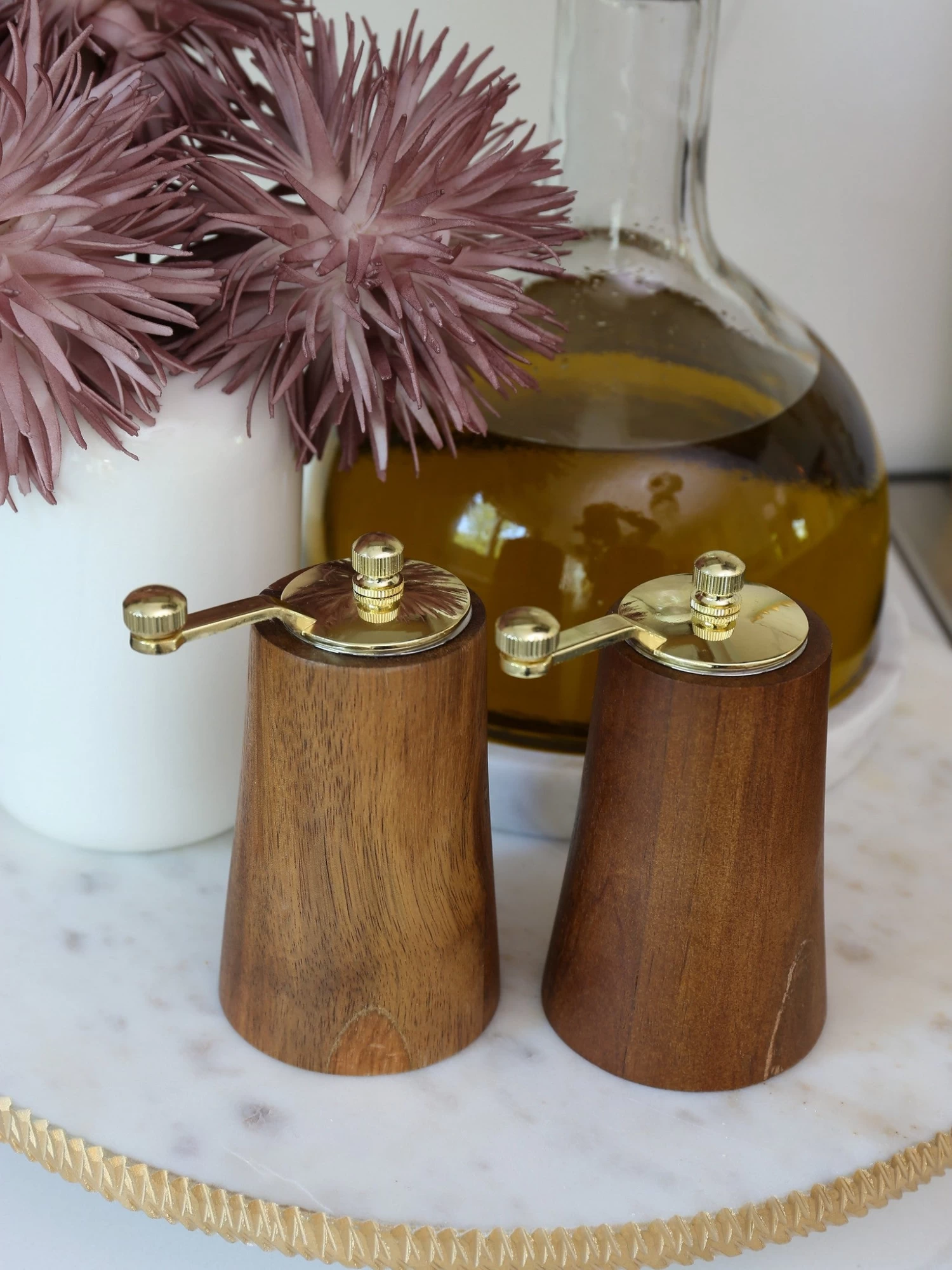 Description: These stylish salt and pepper mills will add a touch of rustic modern to your home! The design is sleek and timeless, and will be the start of your dinner party!