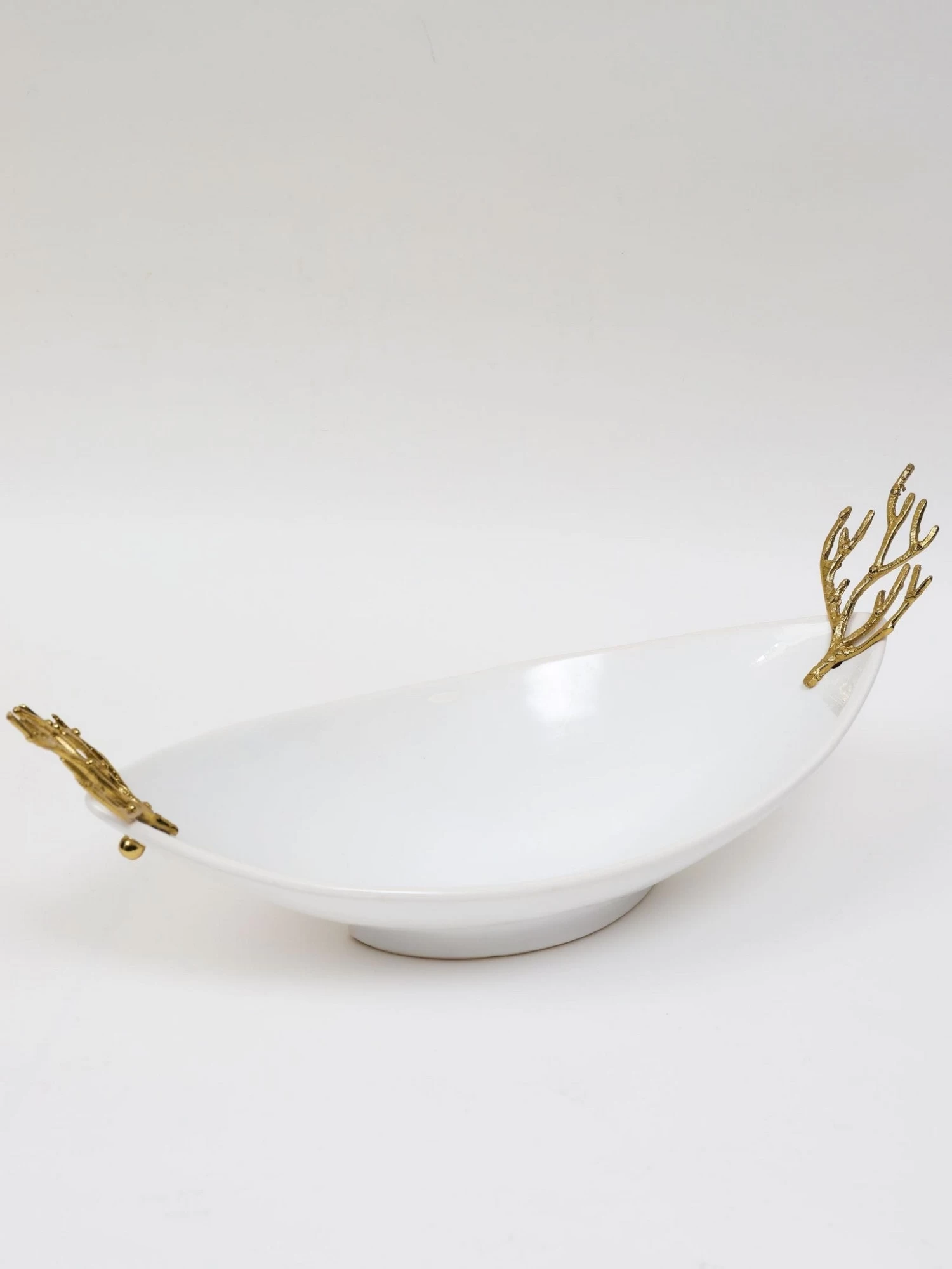 Description: This beautiful bowl is a great piece of elegant design. The gold textured details complements the glossy white ceramic to create a timeless sheer elegance and glam.