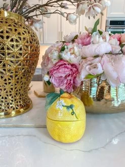 Description: We are in love with this adorable lemon jar! Whether you use this for kitchen or bathroom storage, or just as beautiful decor, it will make a fun statement for your home!
