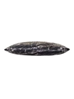 Amal – Charcoal Digital Printed Velvet Oblong Pillow W/ Gold And Silver Print – 20″ X 14″