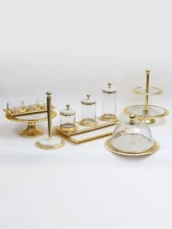 Gold Ripple Edge Serving Tray With 3 Glass Bowls