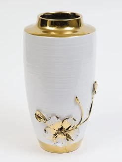 Textured Design Vase With White Marble Base (2 Colors) “From Pops Of Color Home Collection”