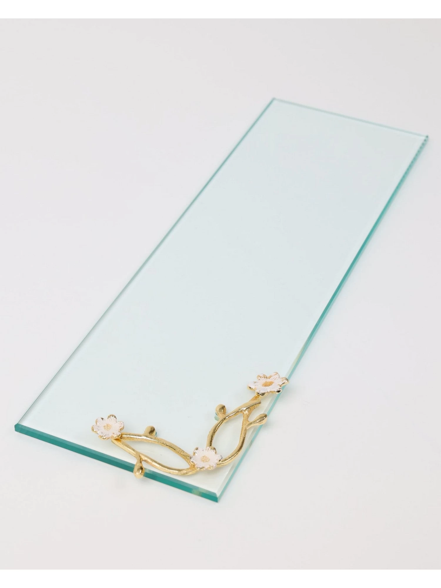 Description: This beautiful rectangular glass tray has stunning gold details with a cherry blossom design!