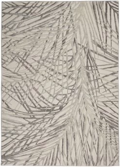 Step into the comfort of a cool, leafy glade with this contemporary area rug design from the Rustic Textures Collection. Its floral pattern of overlapping fronds is created in subtle, modern tones of ivory and grey for a hint of nature with abstract sophistication. The high-low textured cut pile is soft underfoot, low shed and easy clean, with a sleek serged edge.