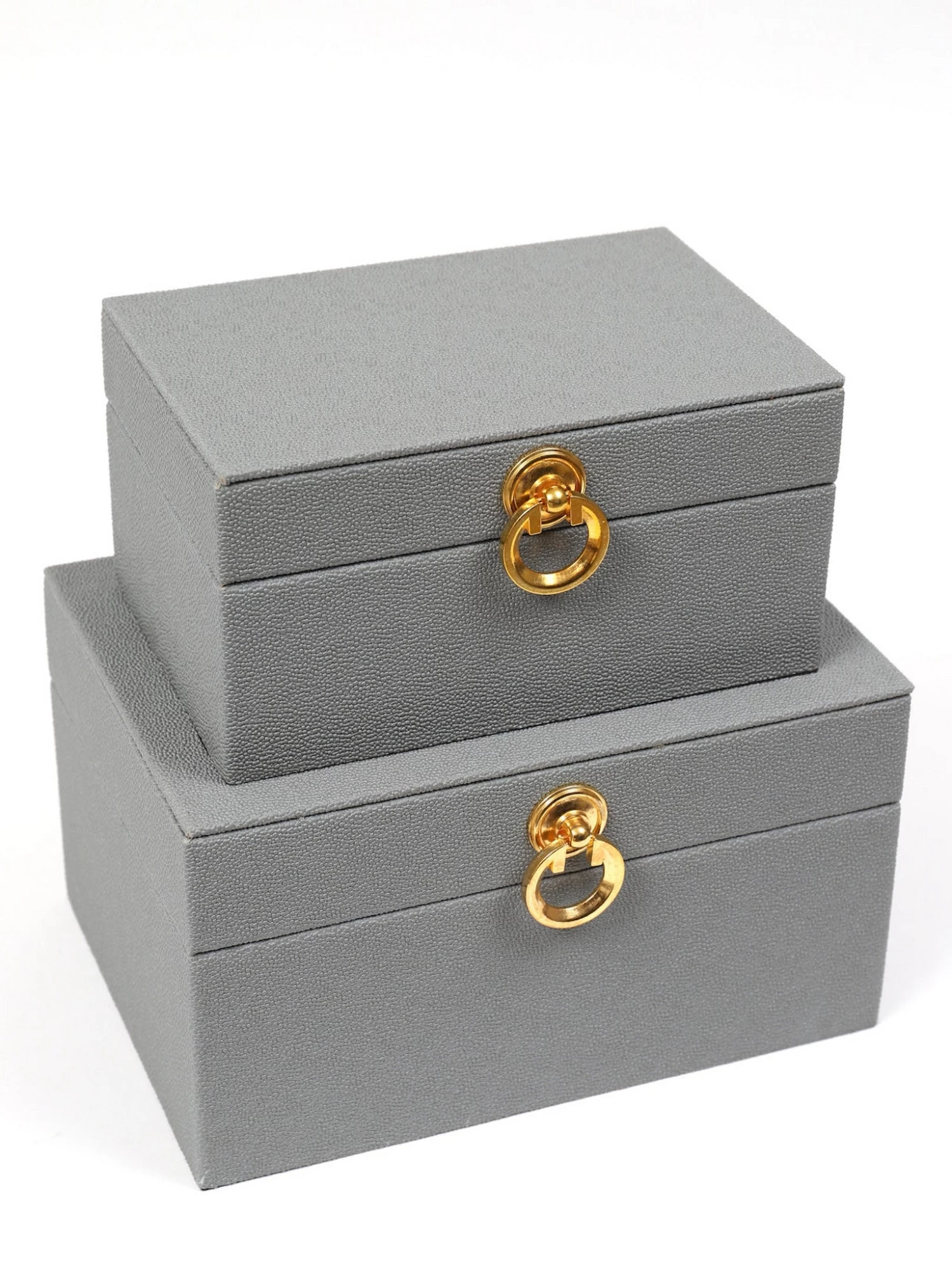 Set Of 2 Faux Leather Boxes W/ Gold Accent (2 Colors)