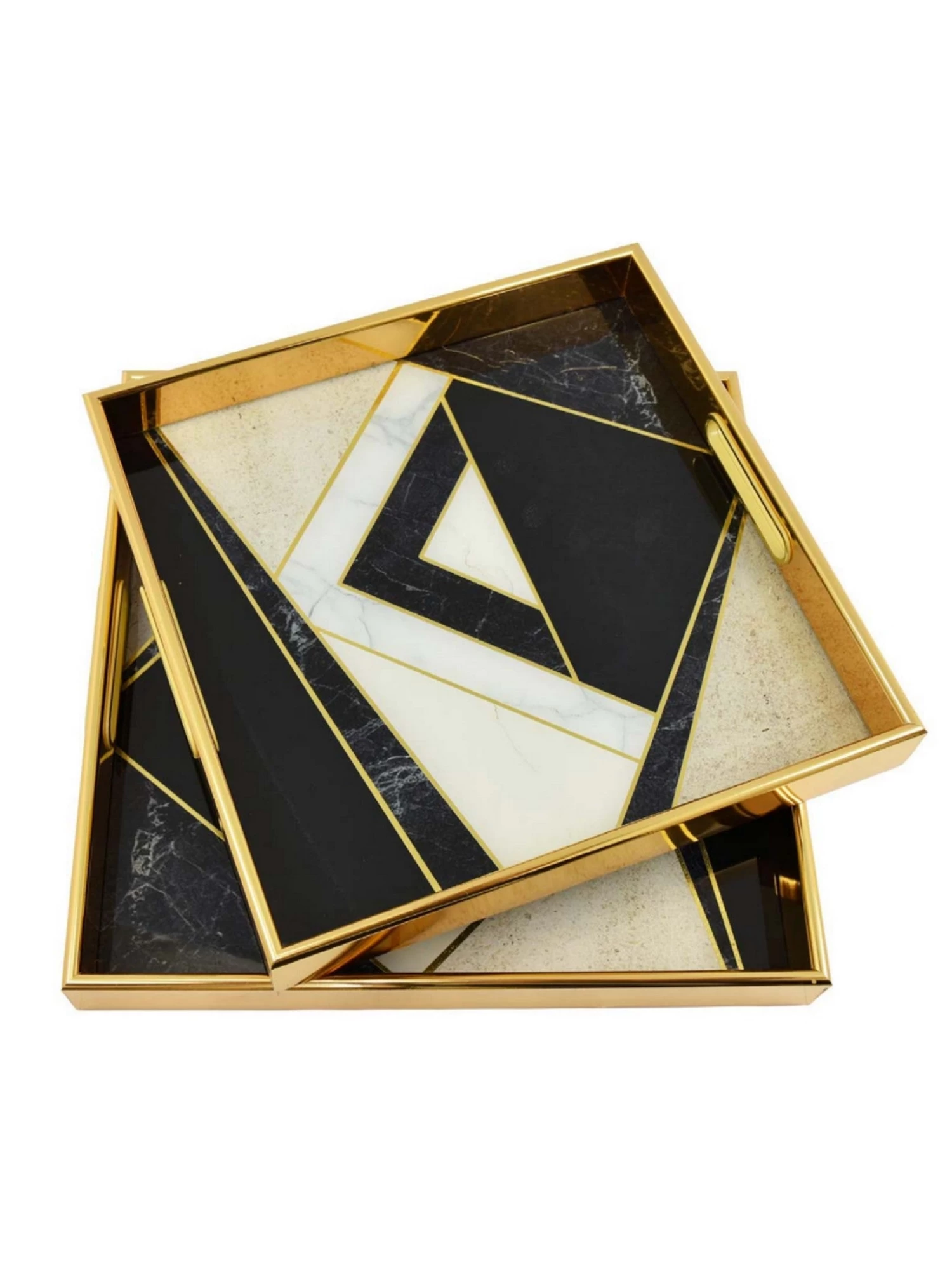 Description: This is a gorgeous rectangular tray with stunning gold, white & cream geometric details that can be used for layering on your coffee table.