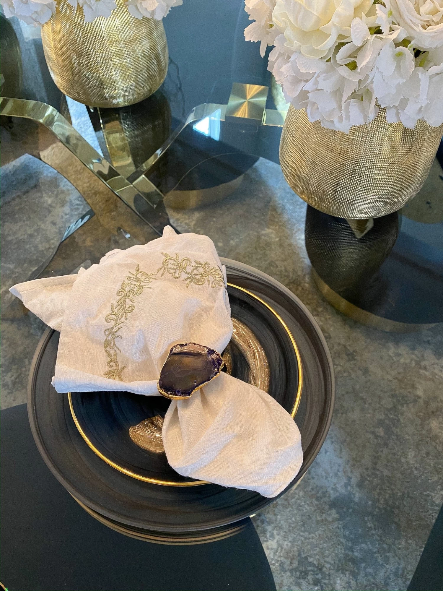 Set of 4 agate napkin holders. Classic and beautiful to celebrate all occasions!