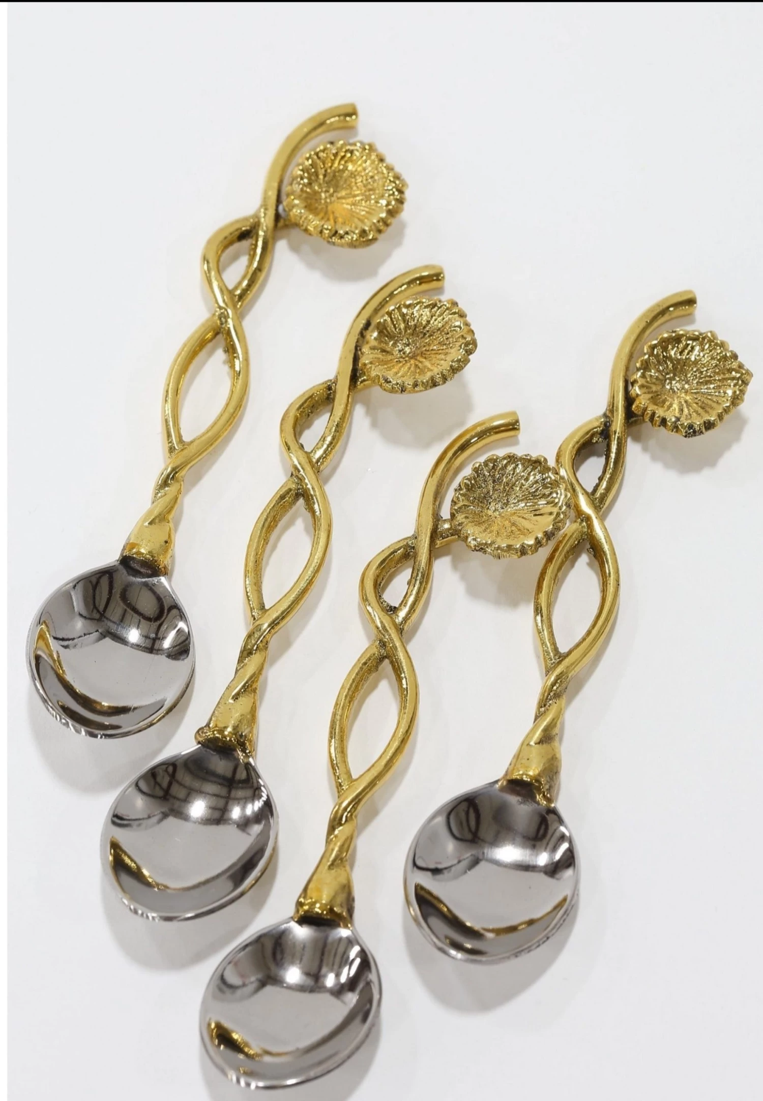 Description: These spoons are absolutely beautiful! We love the natural glam with the floral end piece, and the stylish detail of a twisted handle.