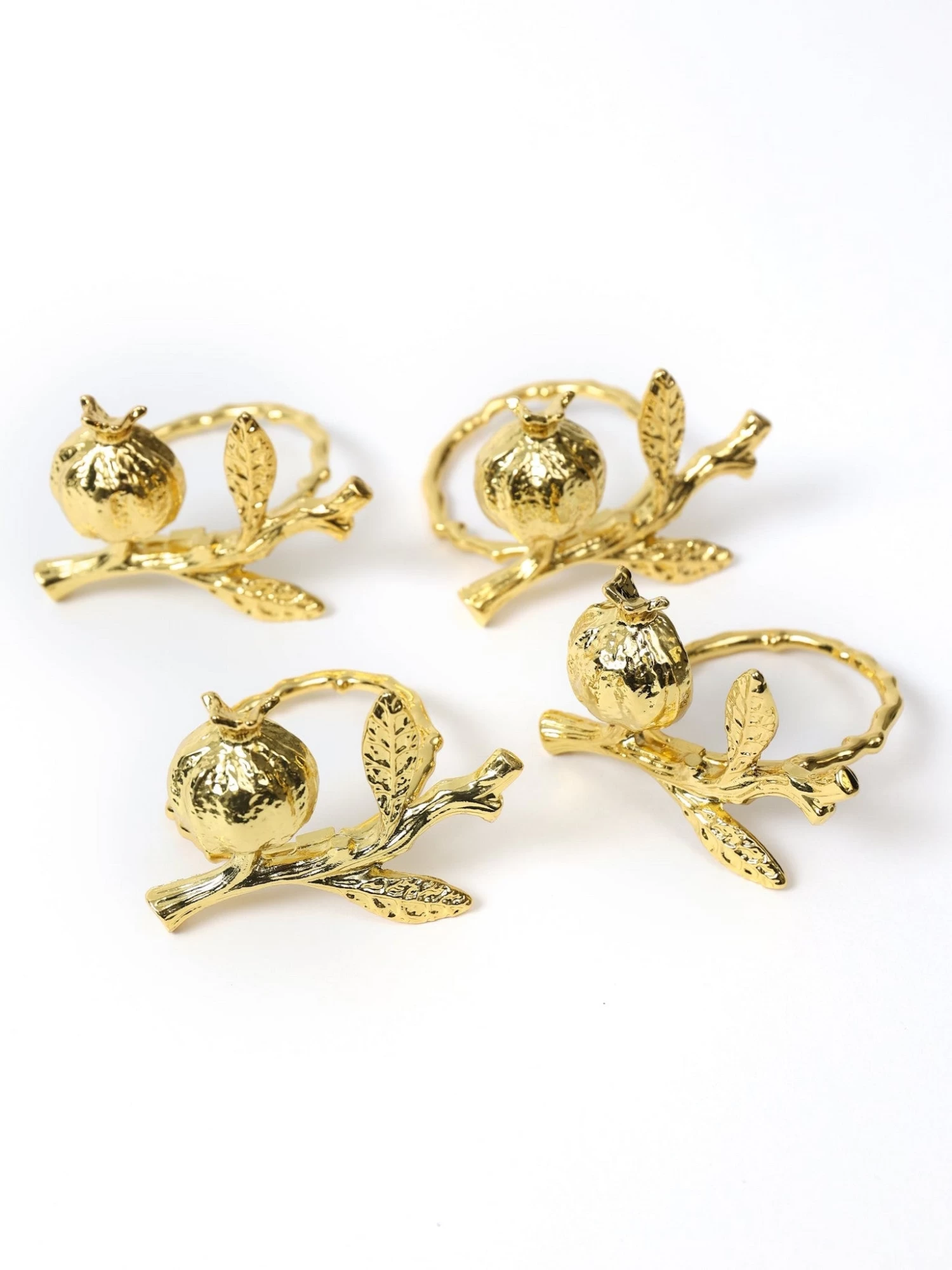 Description: Golden pomegranate-shaped napkin rings Ideal for embellishing your table