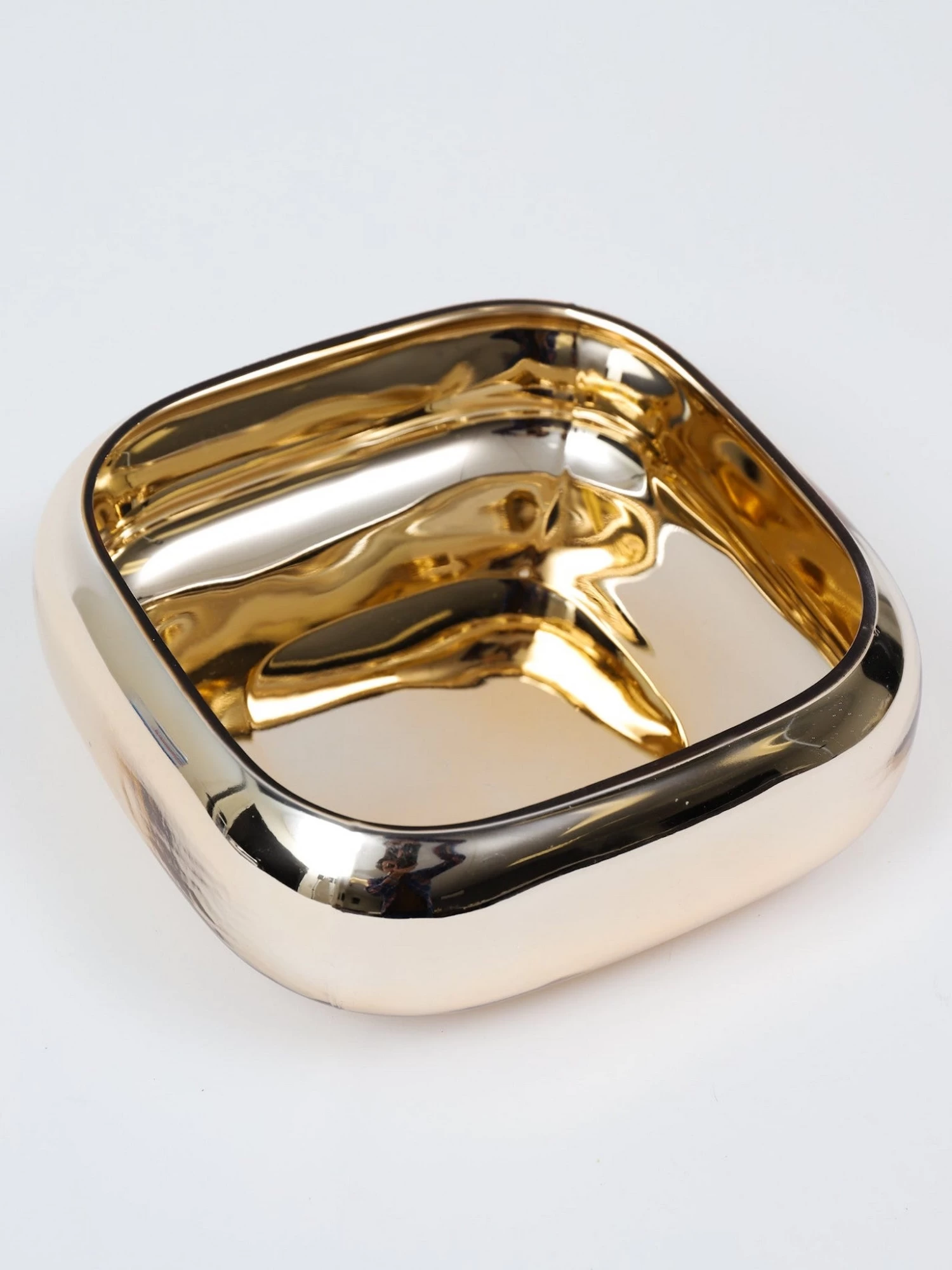 Description: This unique square shiny glass decorative bowl can be used as a vase for your favorite fillers, orbs, or faux florals.