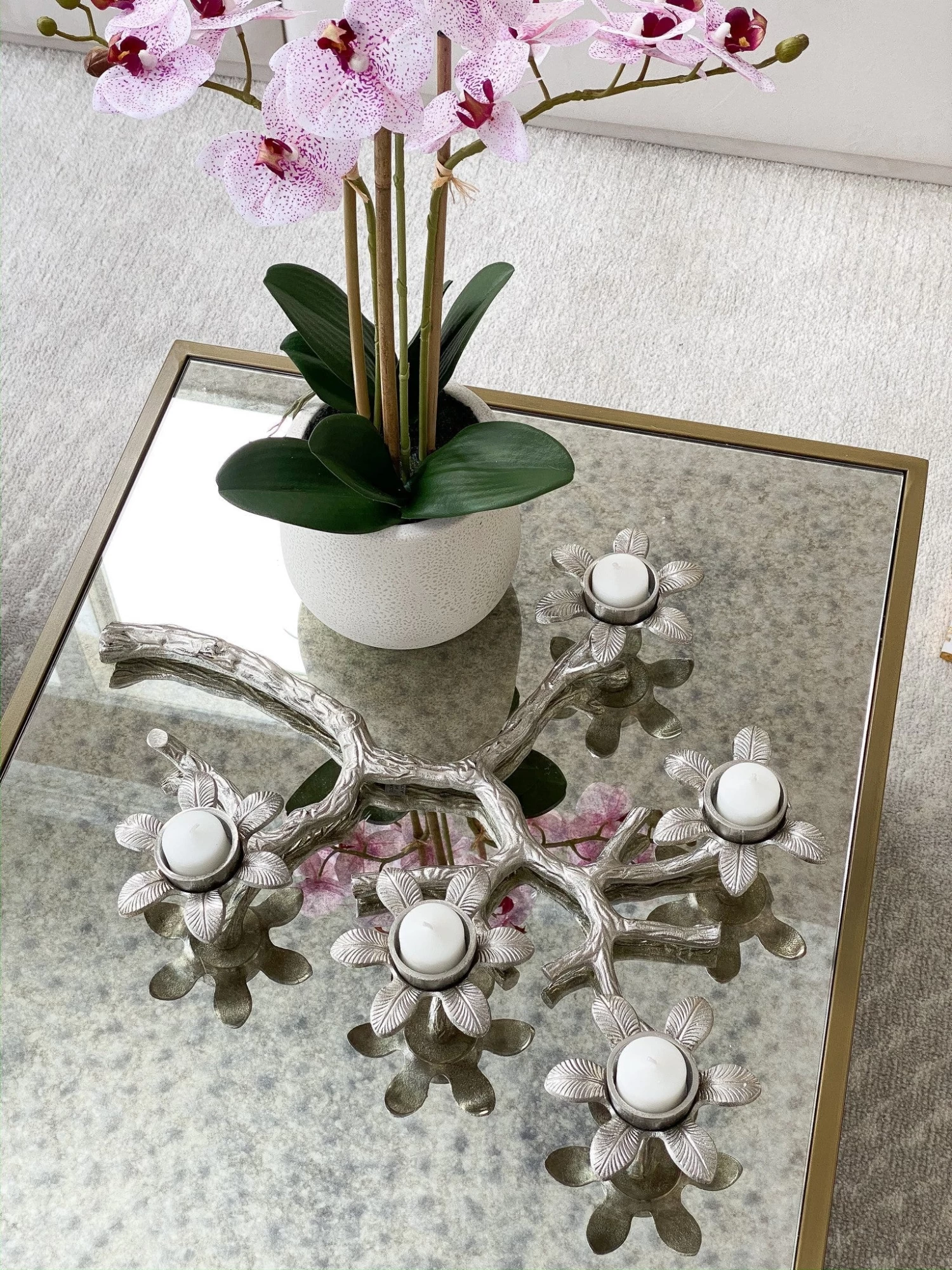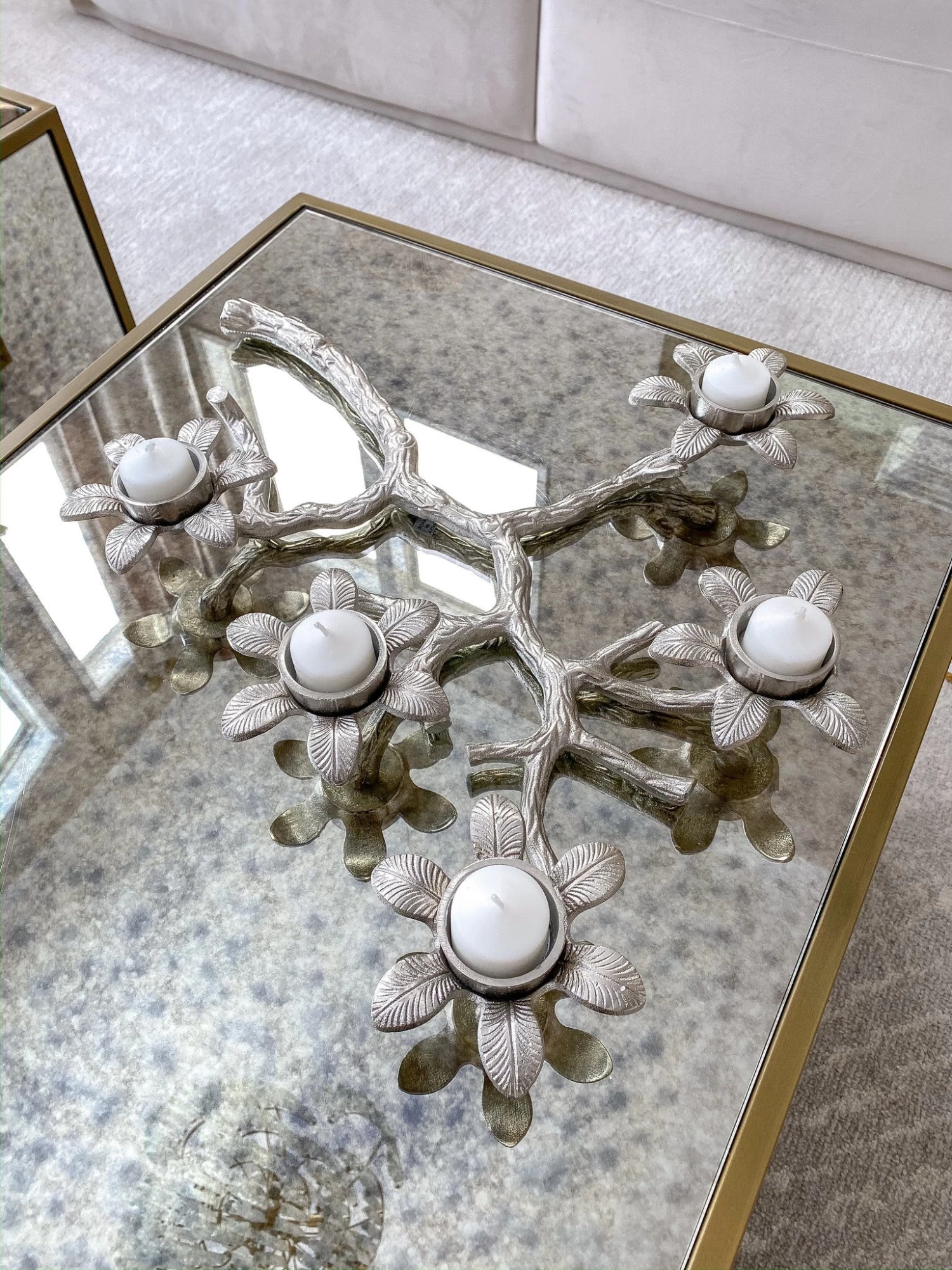 Description: This stunning candleholder makes the perfect centerpiece for your dining table or kitchen island! Comes in silver or gold.