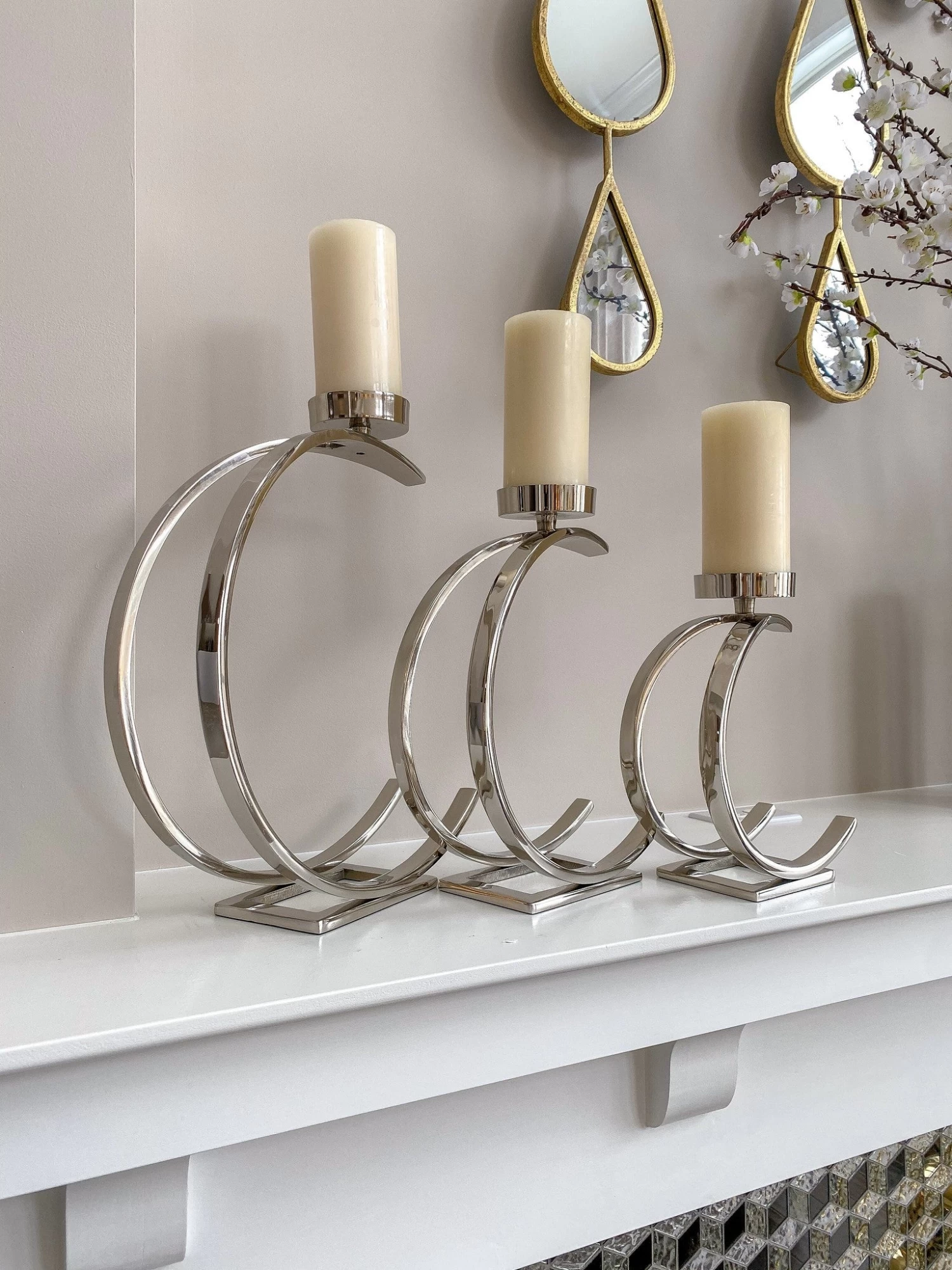 Description: These semi-circular candle holders are a modern yet timeless piece that you can add to any space! Come in small medium and large and we even have them in gold or silver. Sizes and colors sold separately.