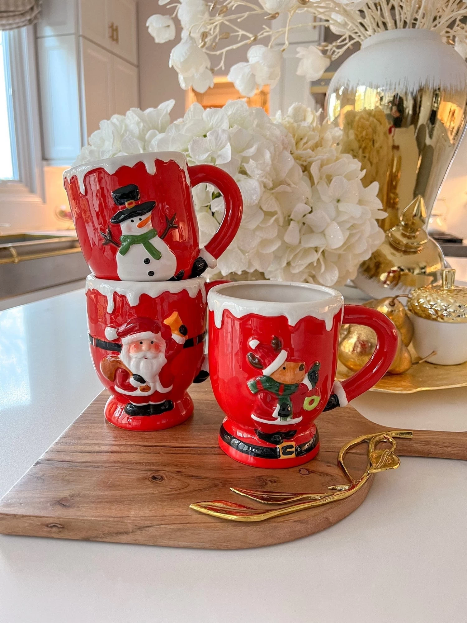 Description: These adorable holiday mugs feature snowy characters that will bring some joy to your holiday season!ย