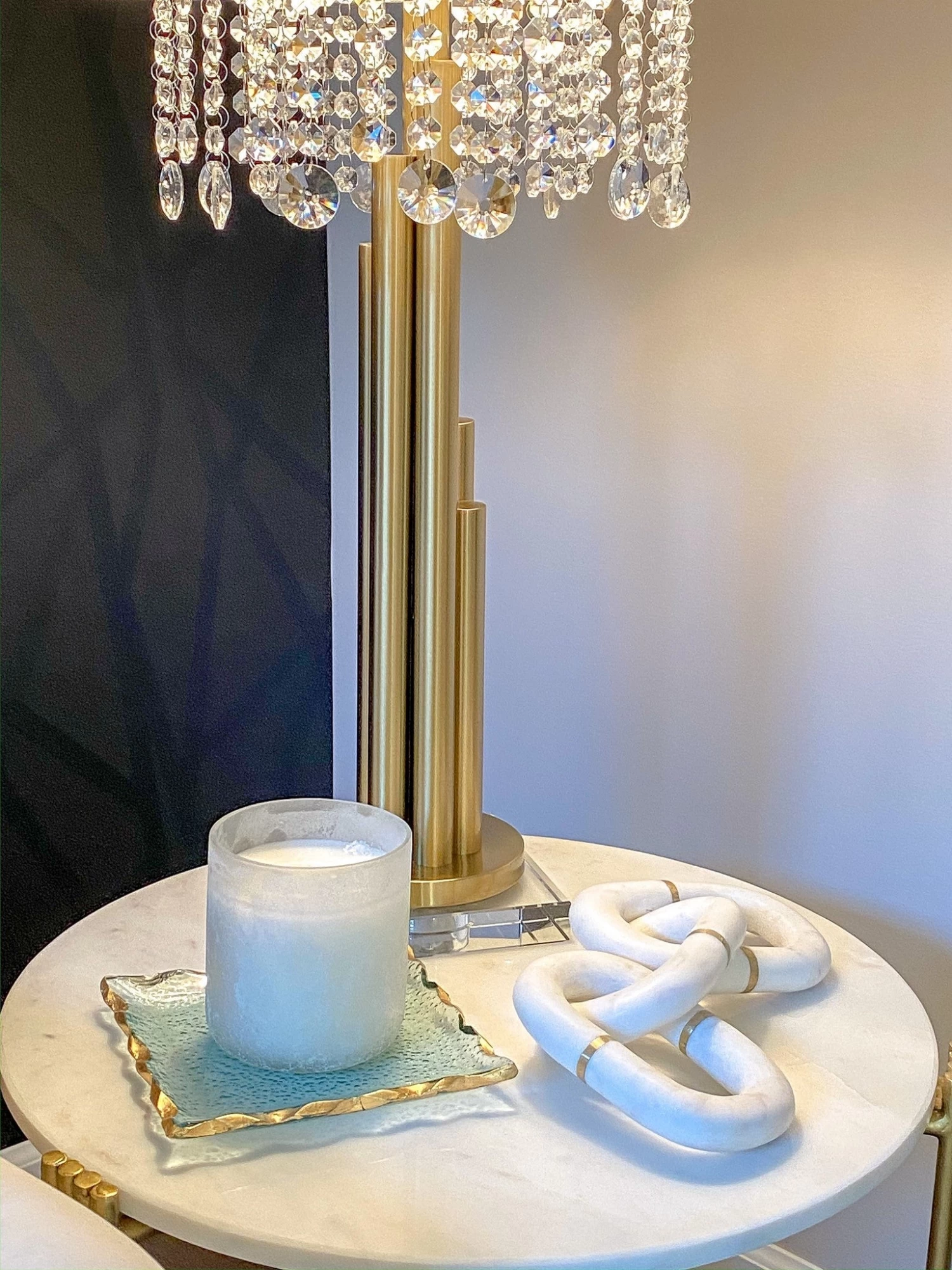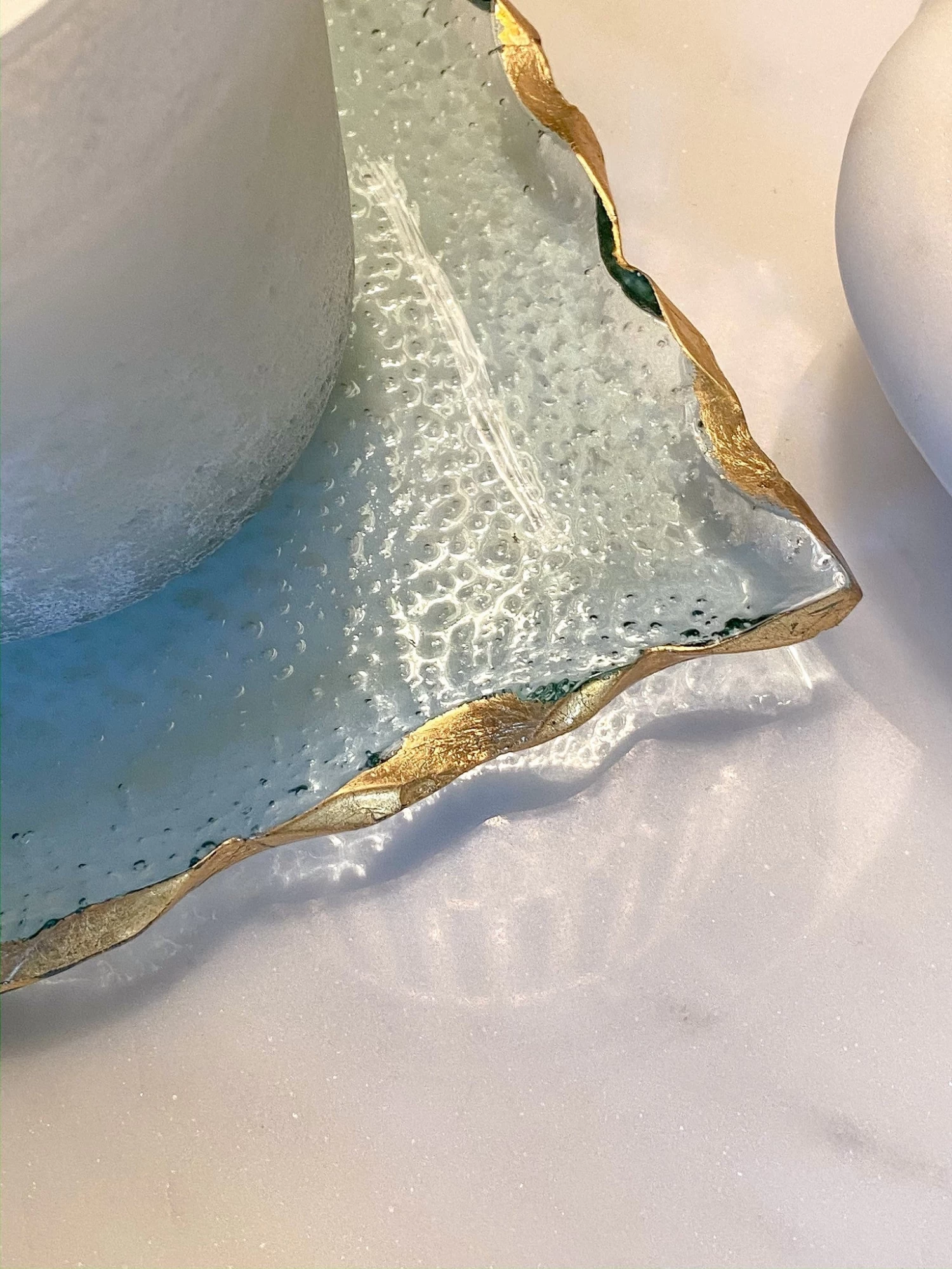 This beautiful square crystal tray is perfect for your coffee table or your island and has many different uses!