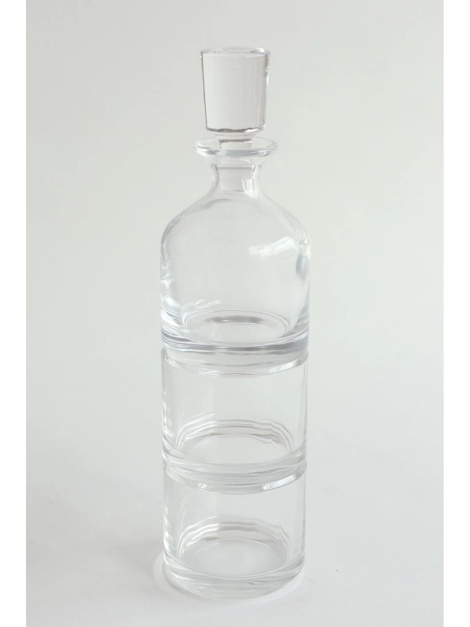 Description: This beautiful glass decanter is a truly unique piece! The decanter is stackable and comes with 2 additional cups! It makes for easy storage and a beautiful design!