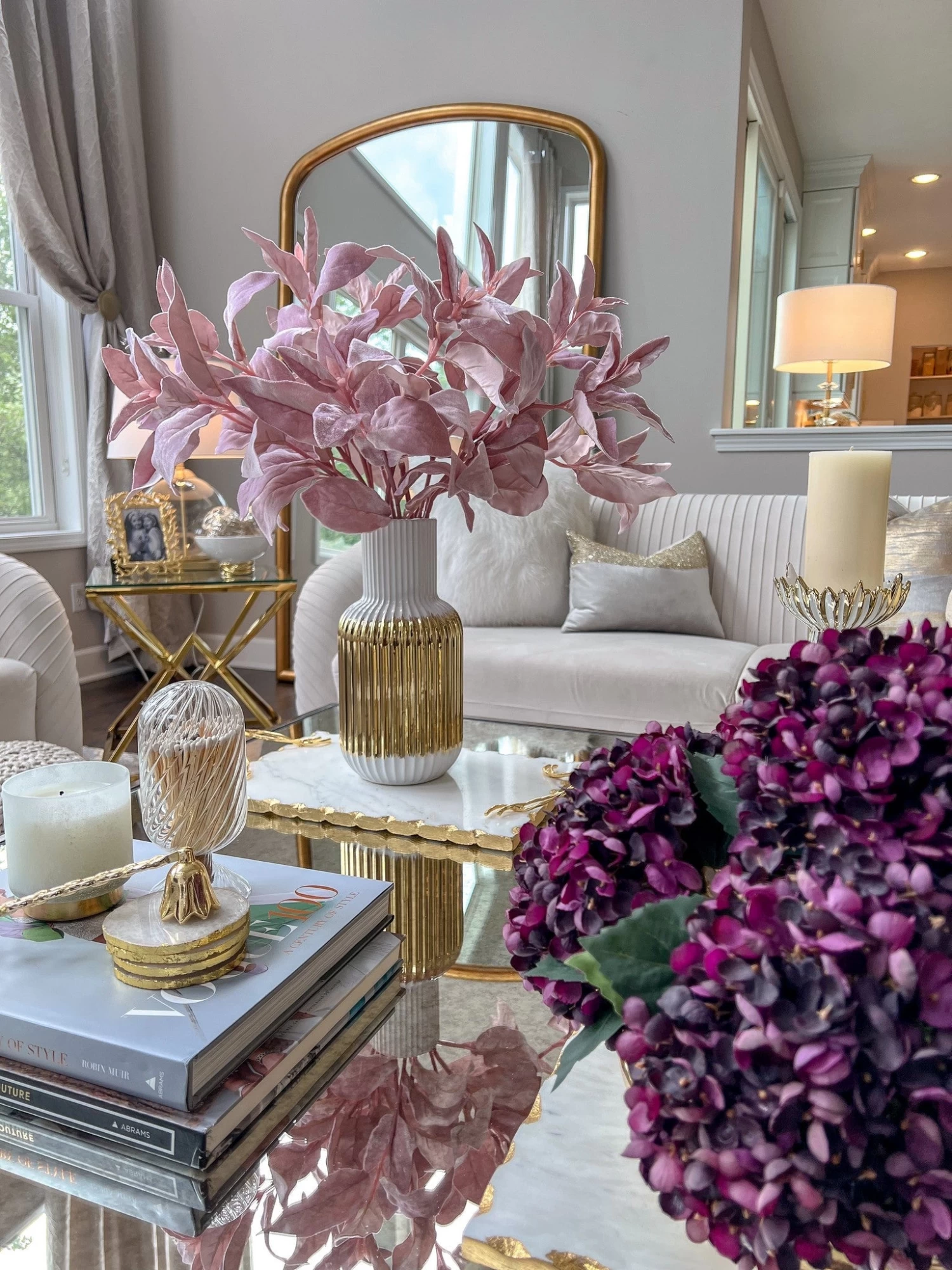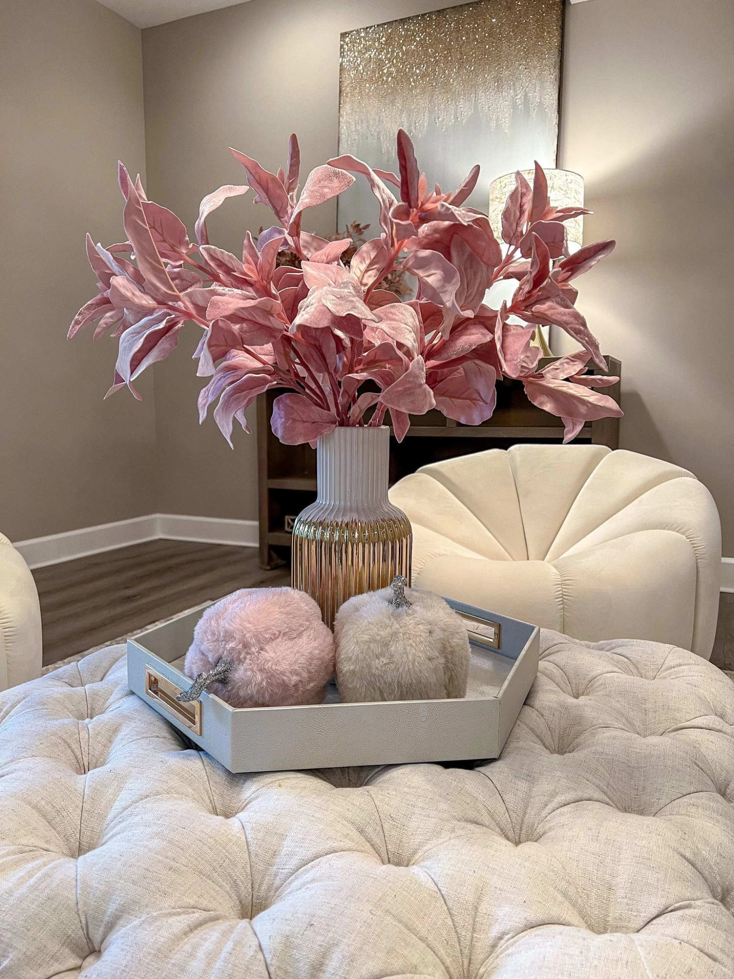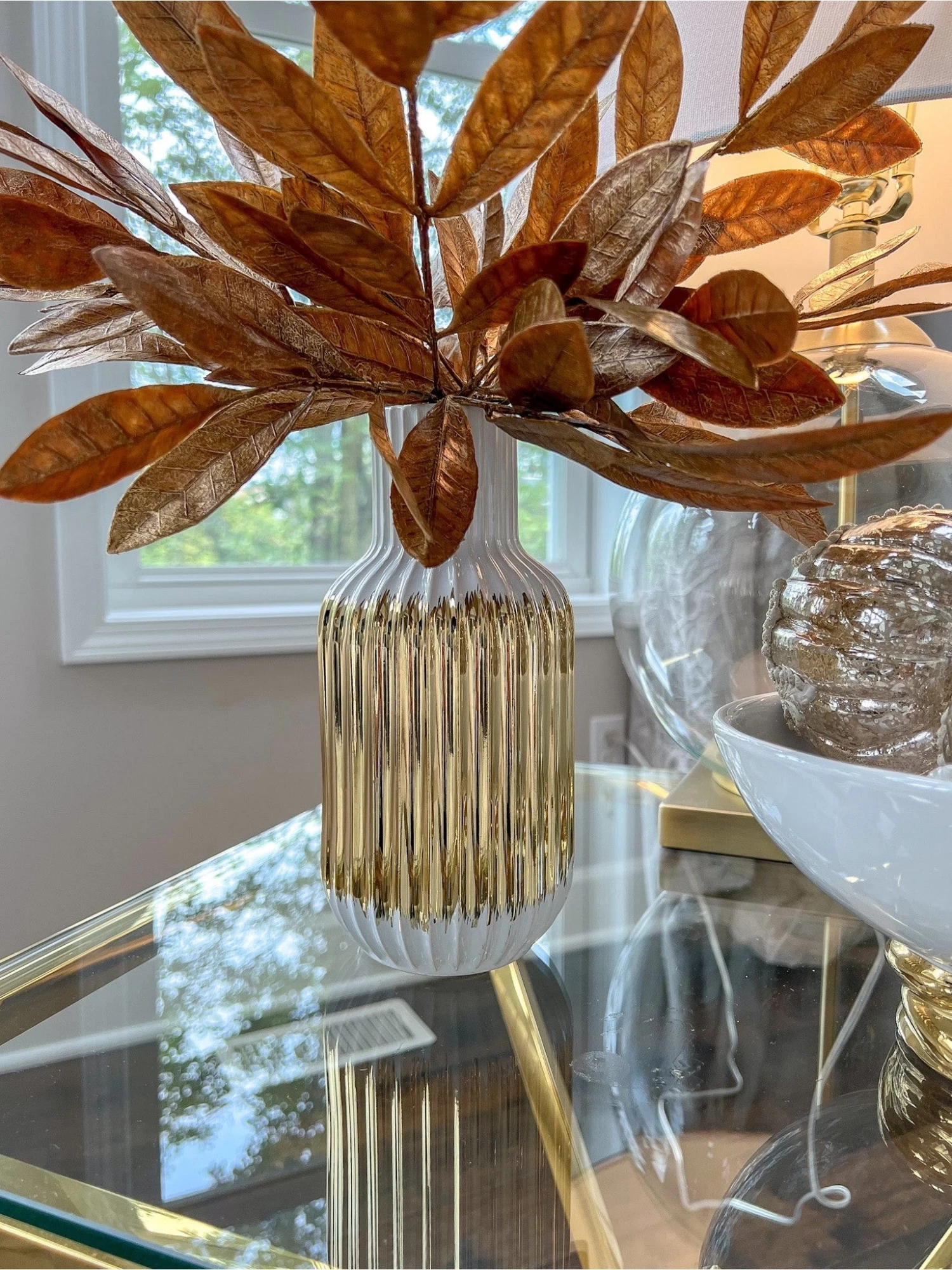 Description: These white and gold linear striped vase is simply yet stunning and will look great with your favorite faux florals!