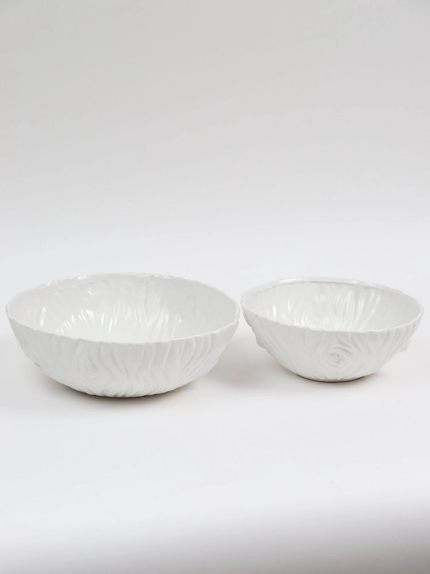 Description: These white ceramic bowls feature a branch design texture and are perfect for fall or anytime of the year. Use this to hold your favorite florals or fruits! We just love the clean look!