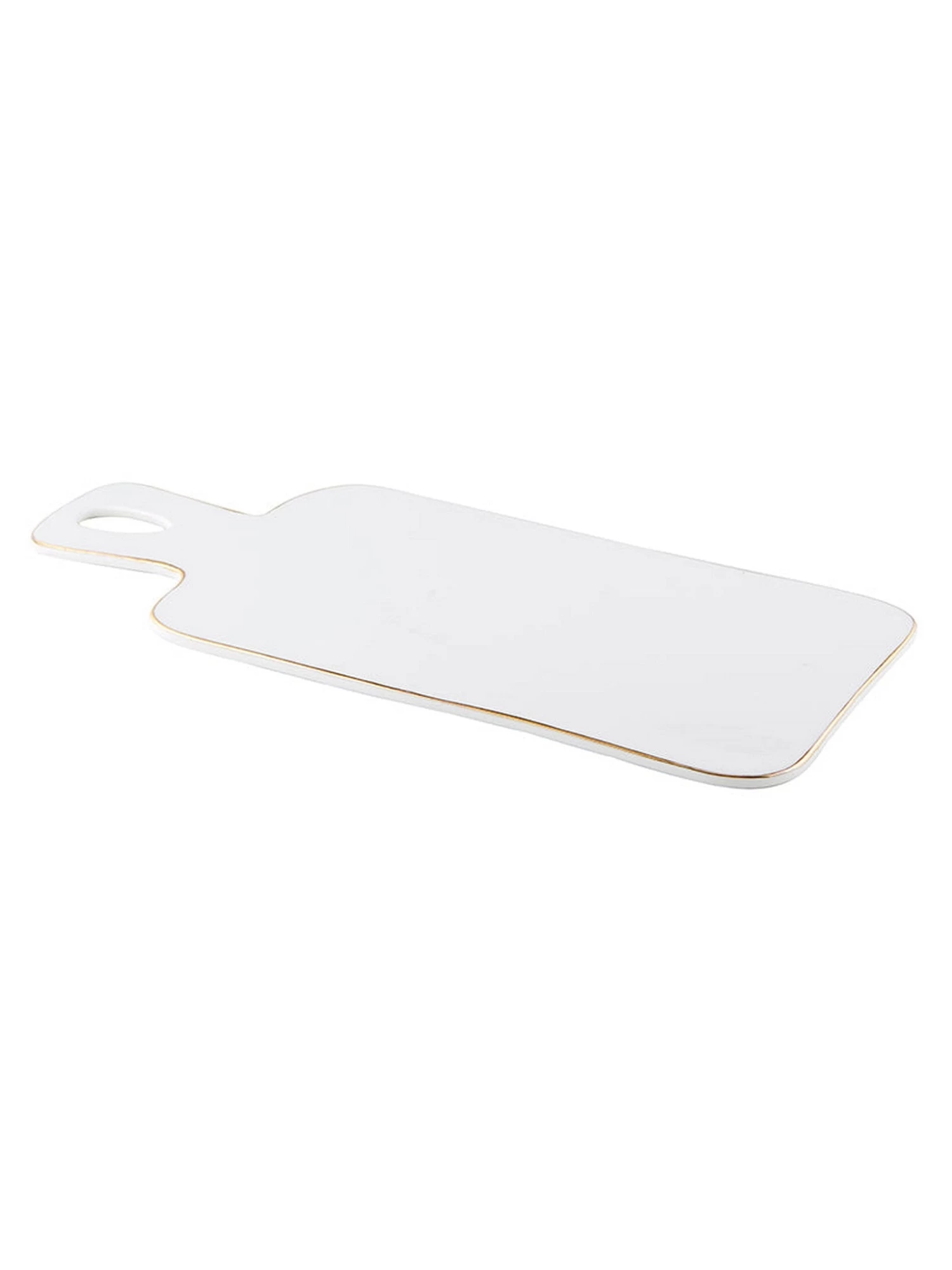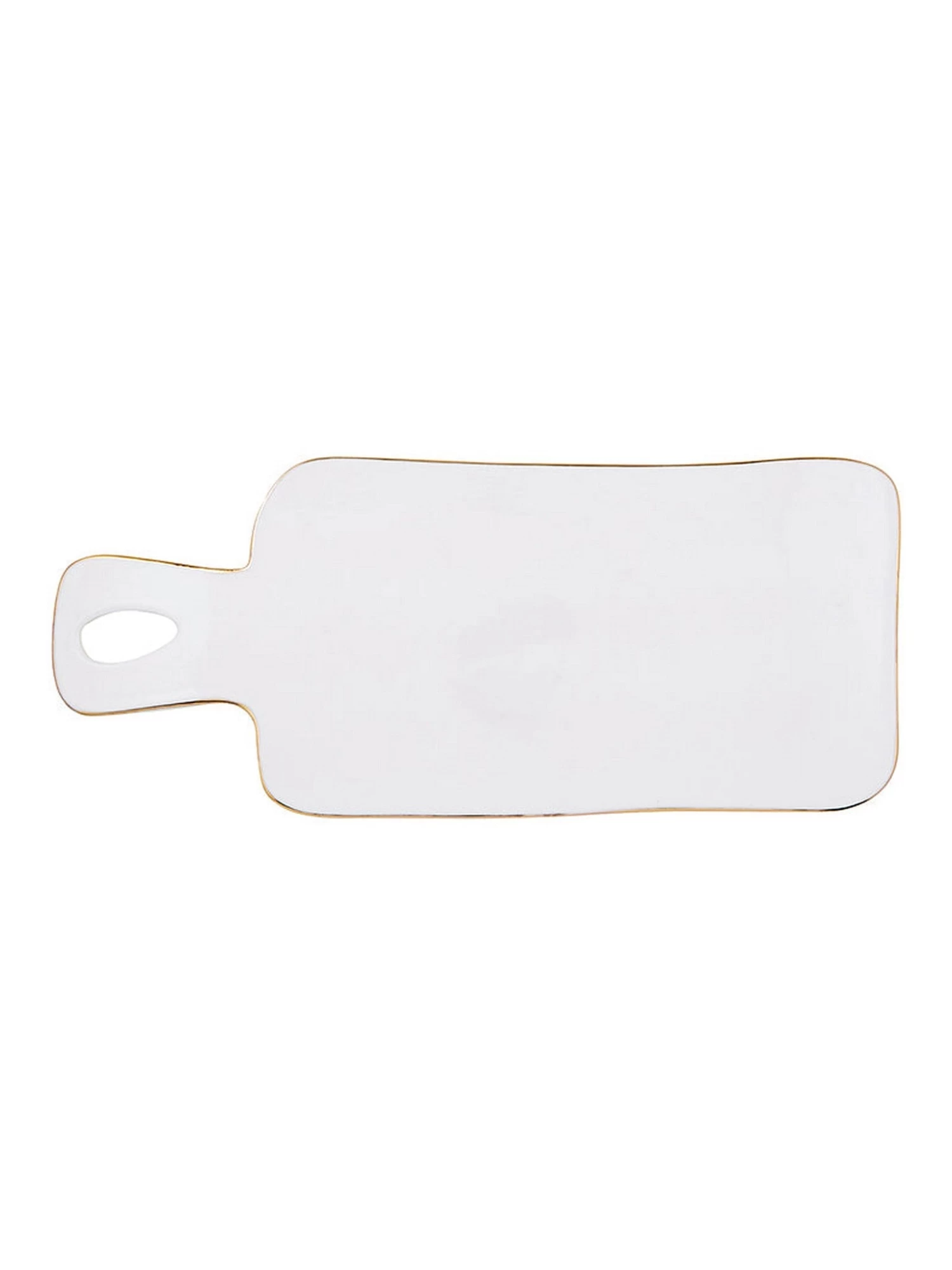 Enjoy simple style with this ceramic serving tray! A bright white base in contrasted by the slight gold trim. A fun and stylist way to serve your favorite snacks!