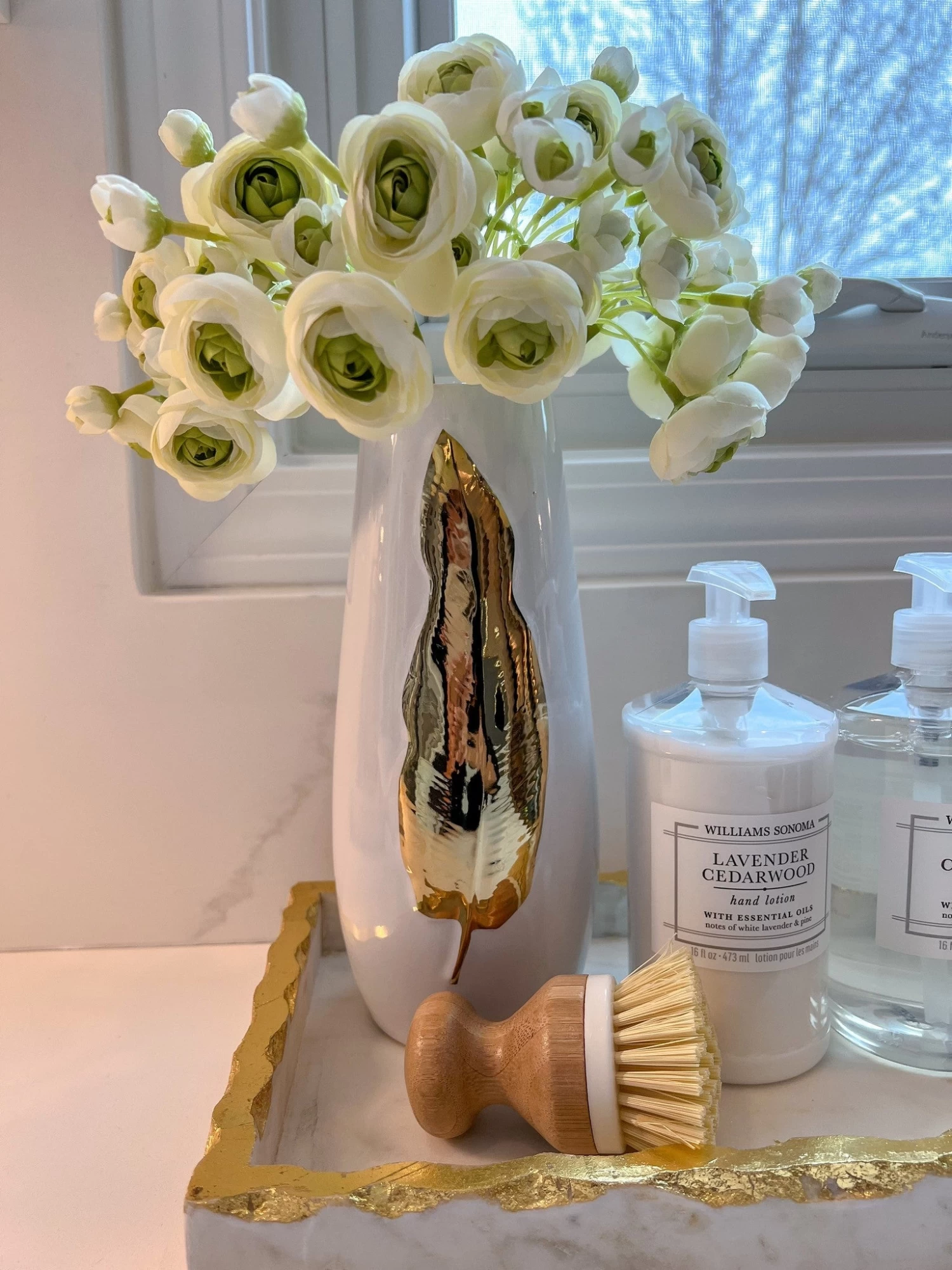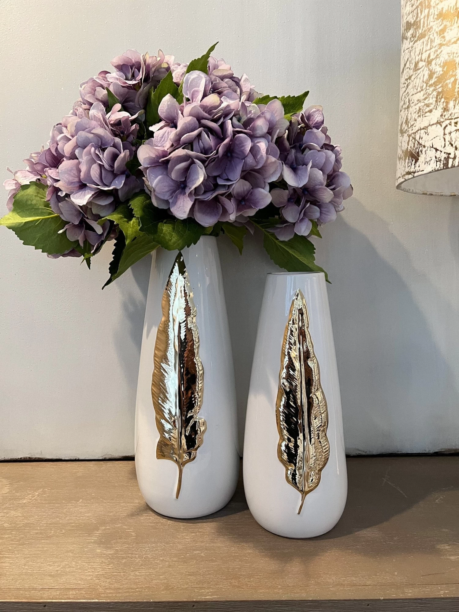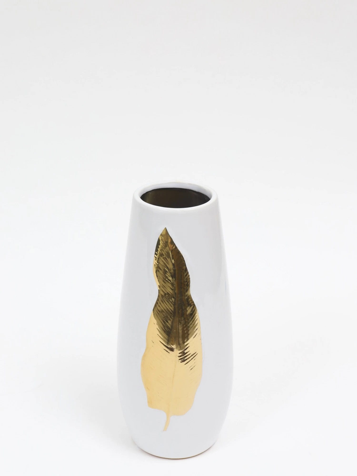 White Ceramic Vase With Gold Leaf Design (3 Sizes)