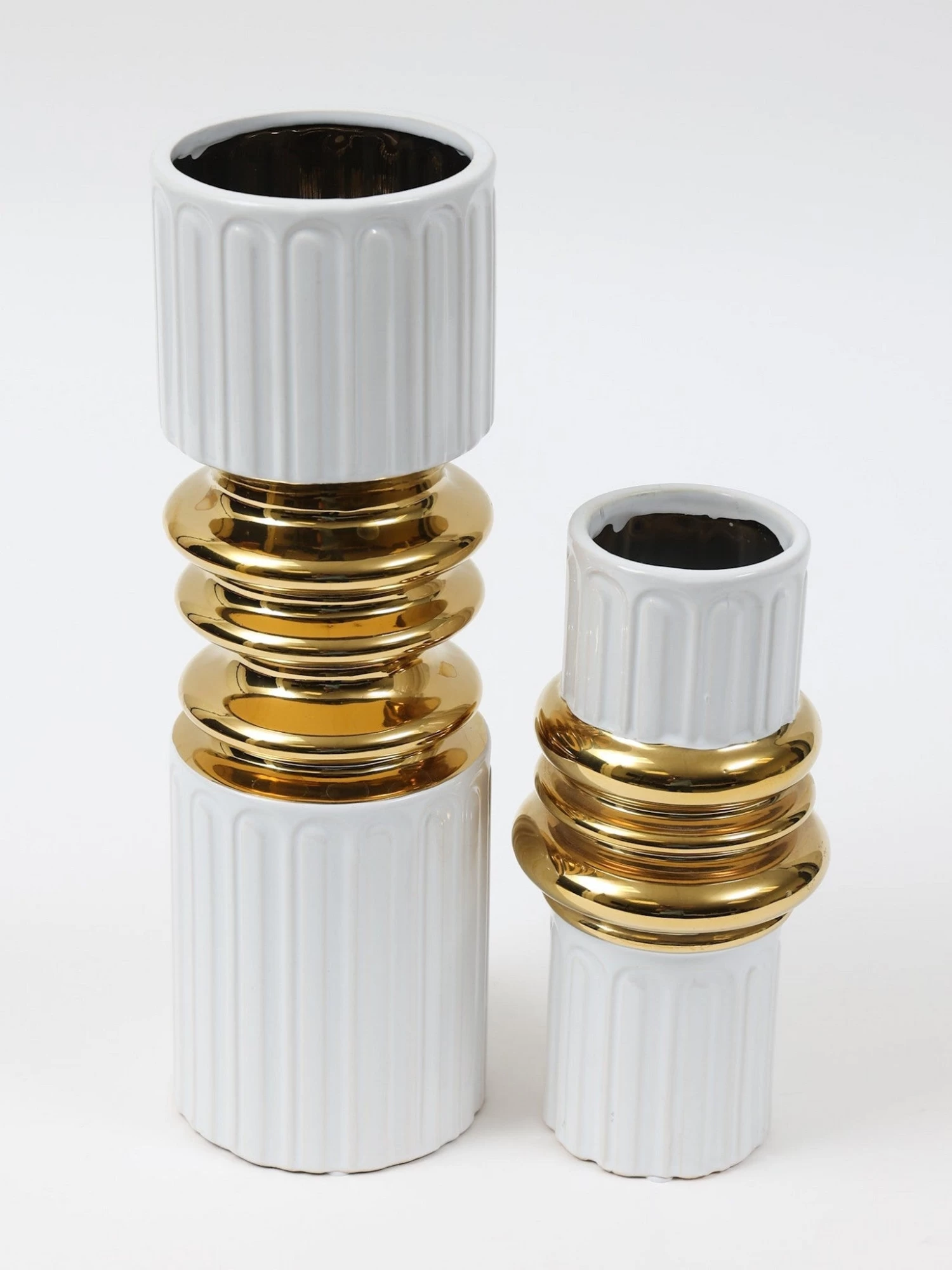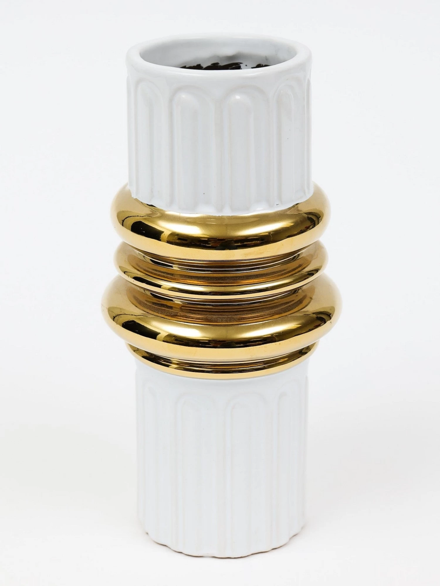 Description: This classic and timeless white and gold vase is just fabulous! Style with faux florals for every season!