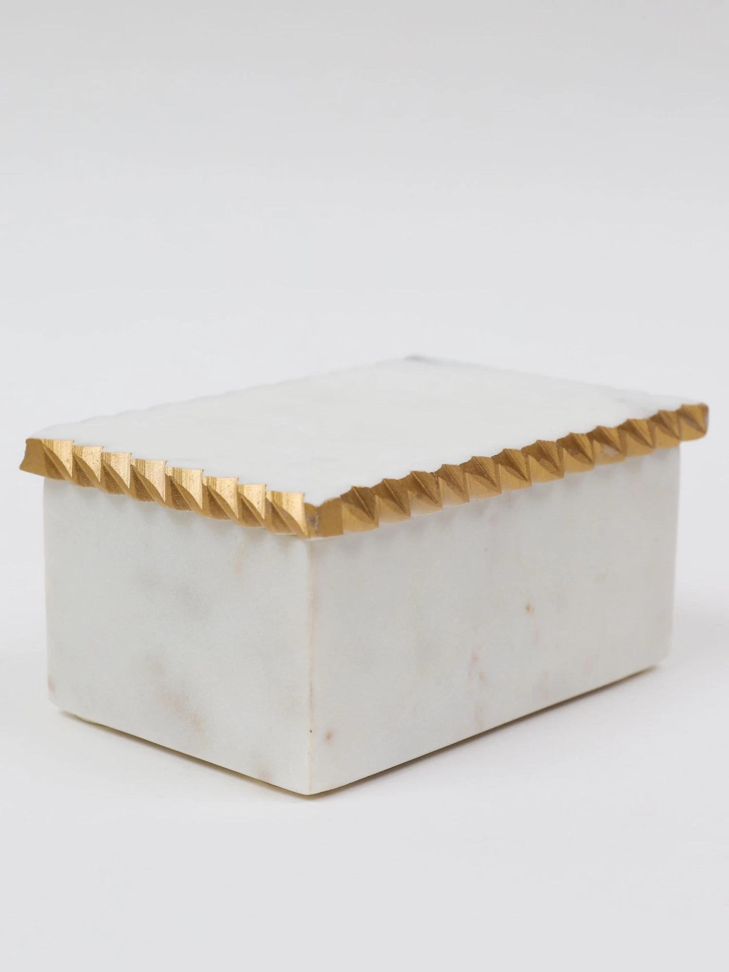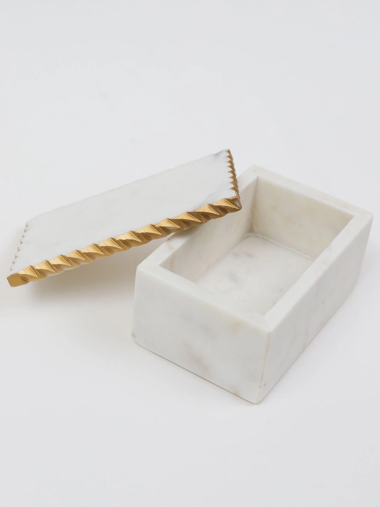 Description: This marble and gold box is such a pretty addition to any room. It is great for storing small trinkets and essentials in style!