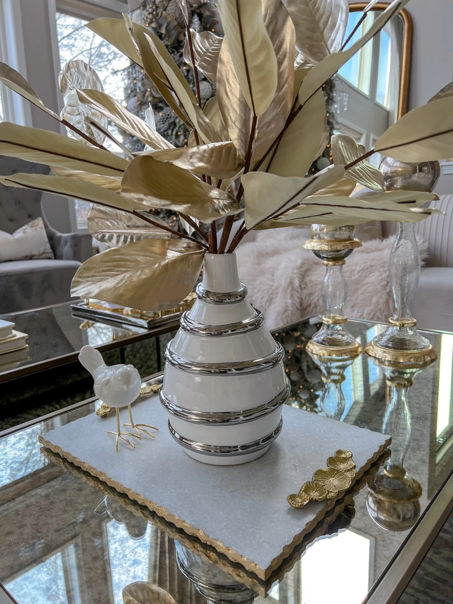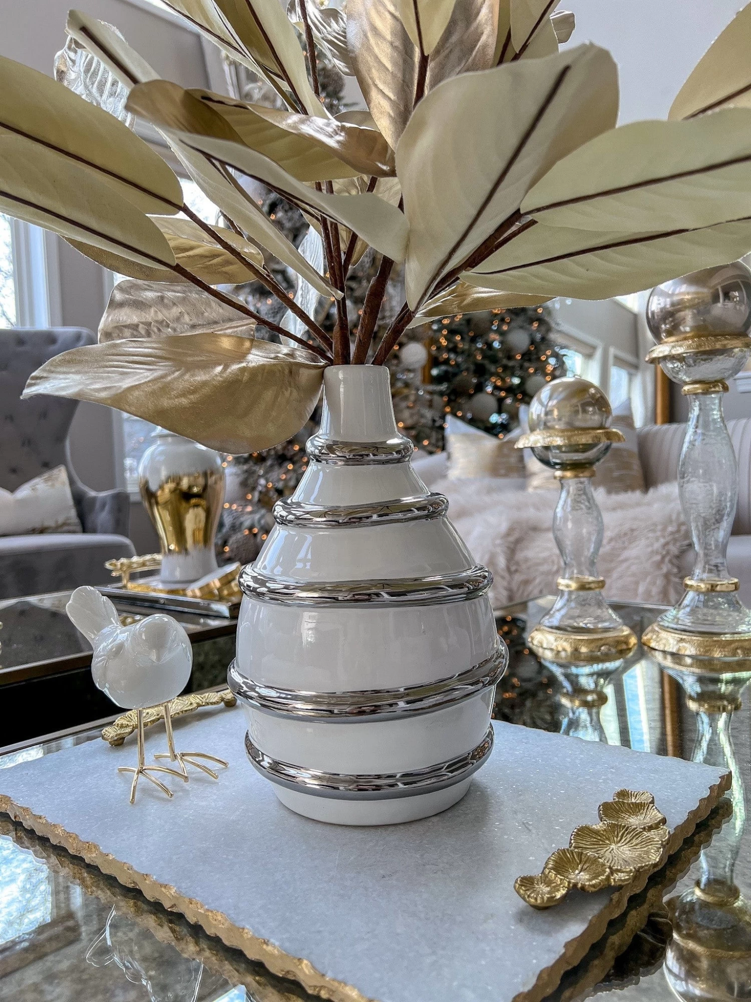 Description: This is a gorgeous vase with a beautiful striped design and will make a statement wherever you display it!
