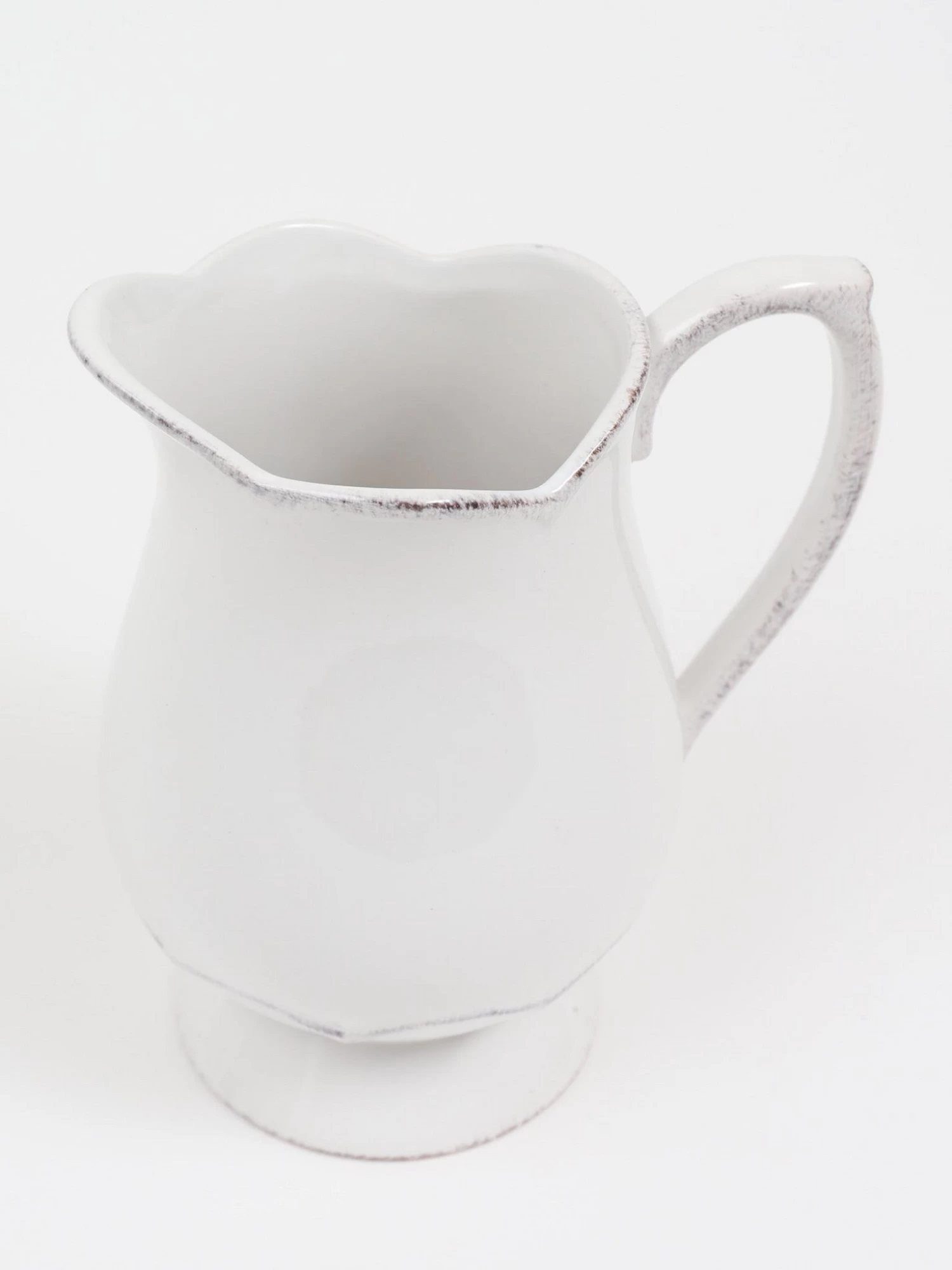 Description: This white scalloped pitcher is perfect to be used as a vase or to serve drinks. A beautiful addition to your kitchen.