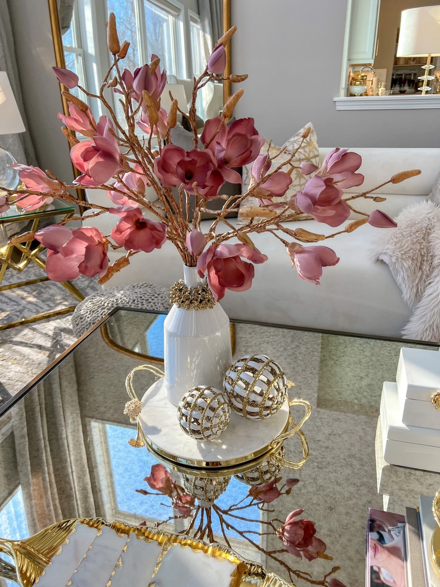 Description:ย A stunning white ceramic vase from The Hydrangea Collection features beautiful gold details for an elegant look. Your home decor will be enhanced and upgraded with this timeless piece.